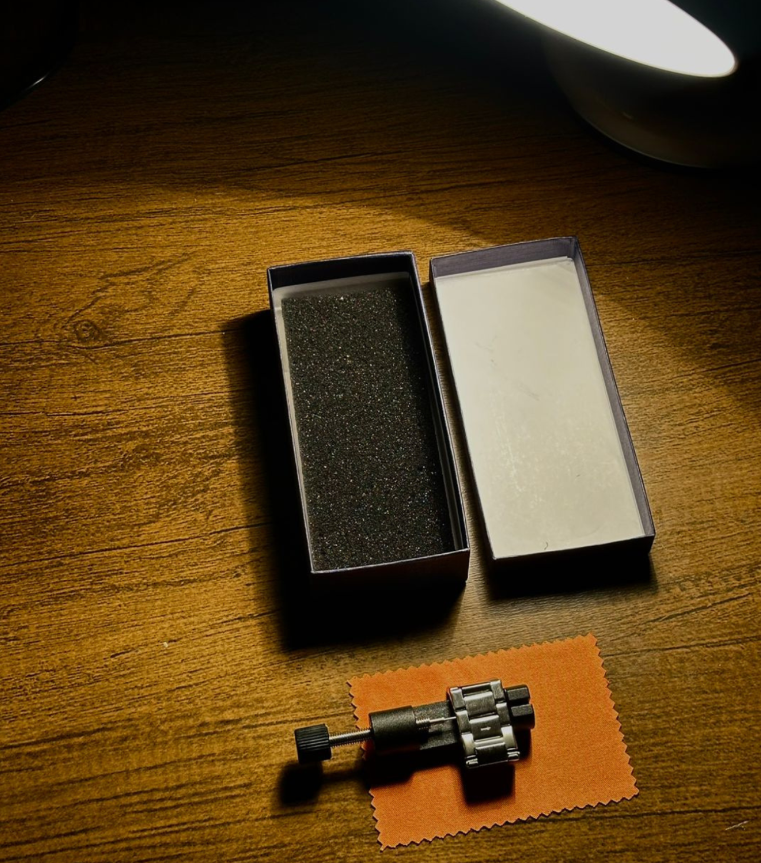 AcompanhaCaixa,pano de limpeza e um ajustador de pulseira manual,bem prático,ideal para ajustar seu relogio Orbea sem precisar sair de casa!